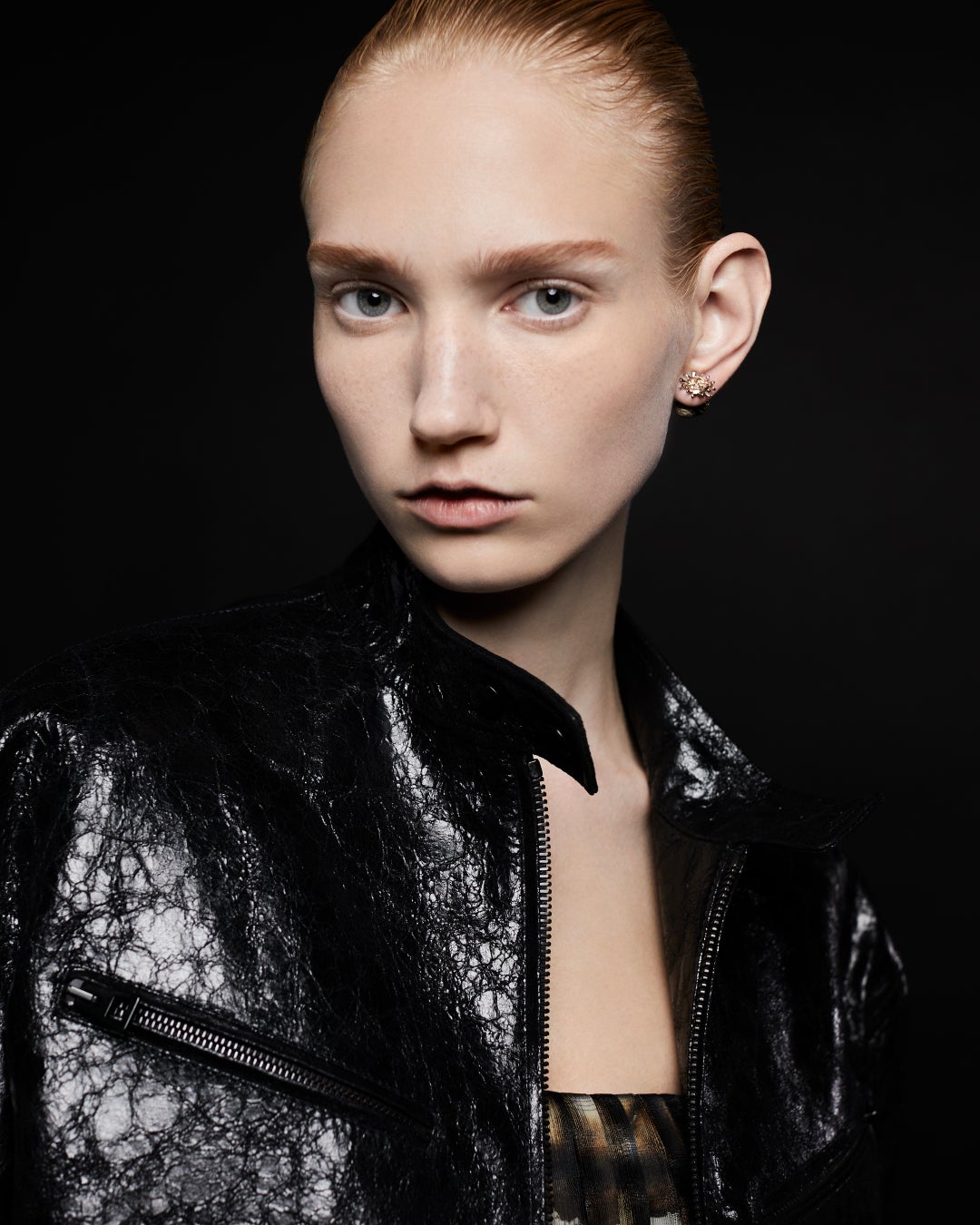 ツィア・キウリによる2024年春夏 ウィメンズ コレクションのために、輝きを放つ美しい肌と、唇の中央、