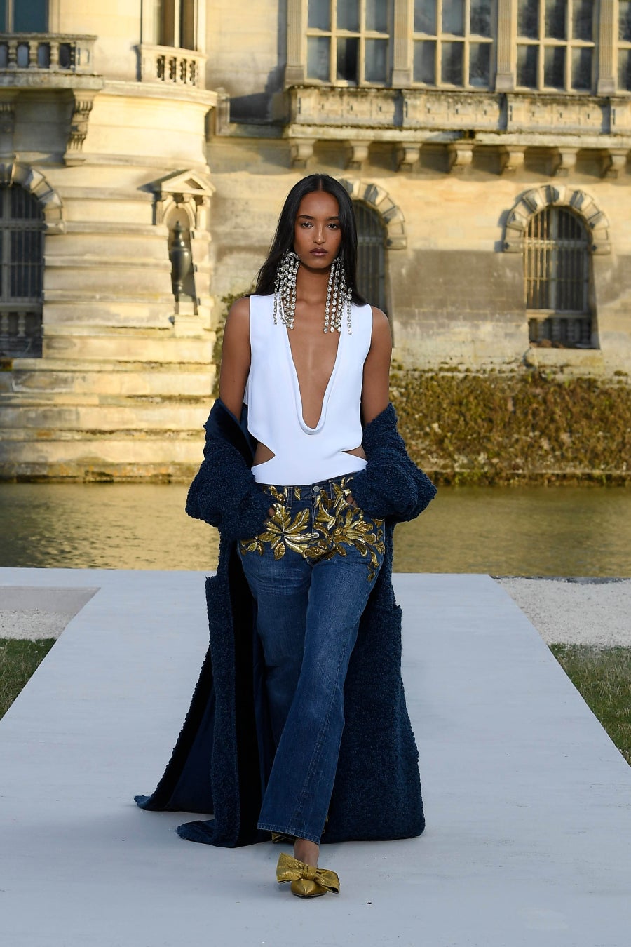 その他のジーンズもトロンプ・ルイユの気が遠くなりそうなビーズワークが施された新しいデニム構造に作り替えられています。