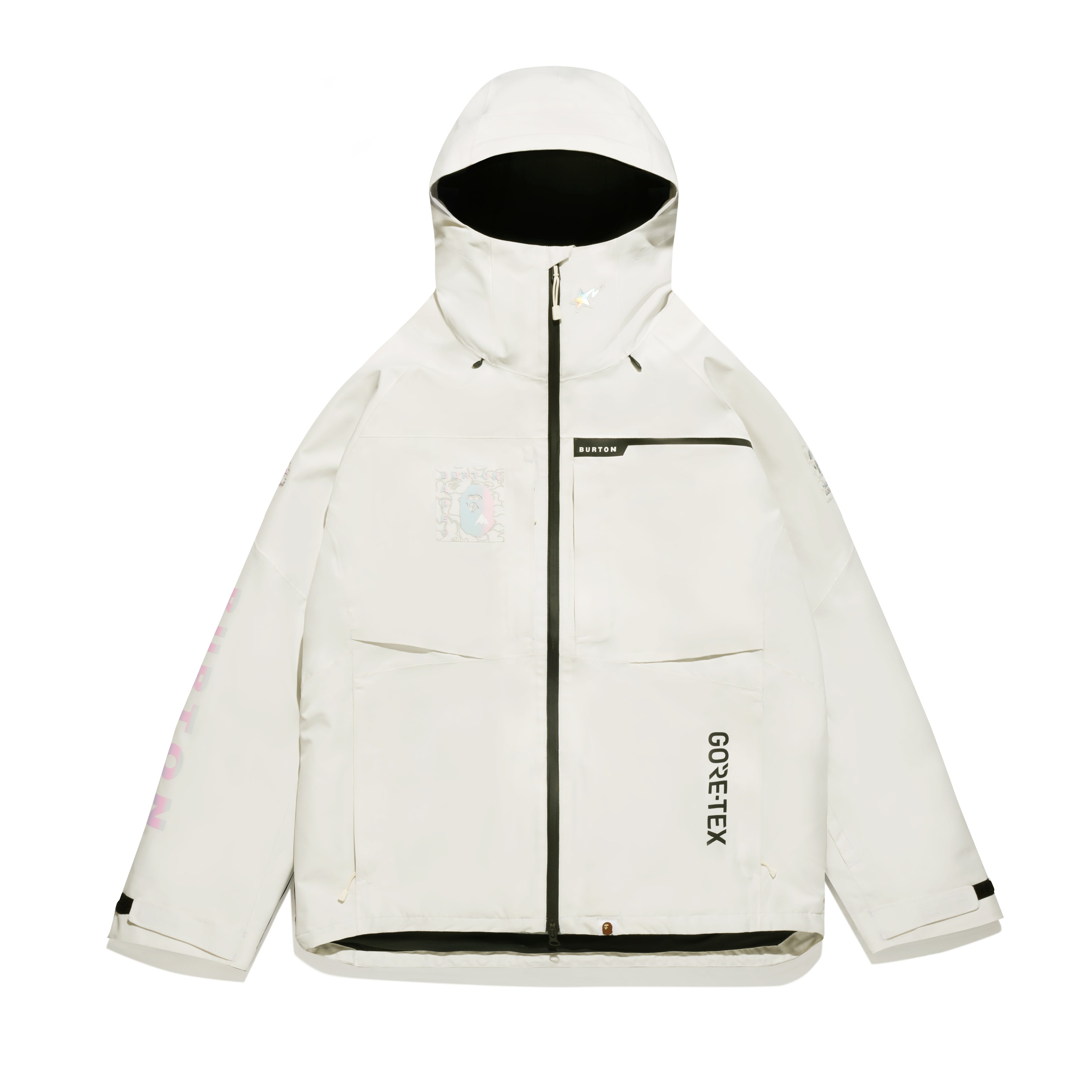 動きやすいシルエットに、ゲレンデでの使い勝手を考慮した洗練されたディテールを加え、APE HEADやSTA、BAPE CAMO®︎、「Burton」のマウンテンロゴなどを、ホログラムを使ってユニークに表現しました。