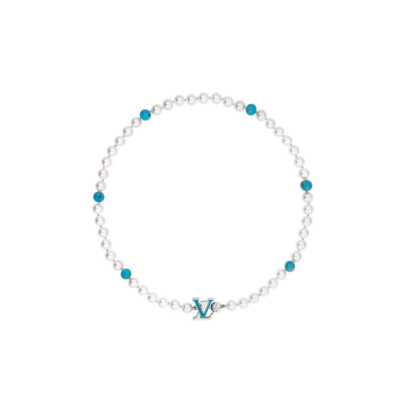 2024秋冬メンズ·ファッションショーにおいて、ファレル·ウィリアムスのインスピレーション源となったアメリカ先住民のコミュニティにオマージュを捧げ、艶やかに仕上げた「ネックレス·ターコイズロデオ」。天然のターコイズを使用したビーズにホワイトのスワロフスキー®パールをあしらい、プッシュボタン式のLV クラスプとモノグラム·フラワーのチャームでアップデートしました。同シリーズのブレスレットなど、「ターコイズ」コレクションの他のアイテムとも相性抜群です。