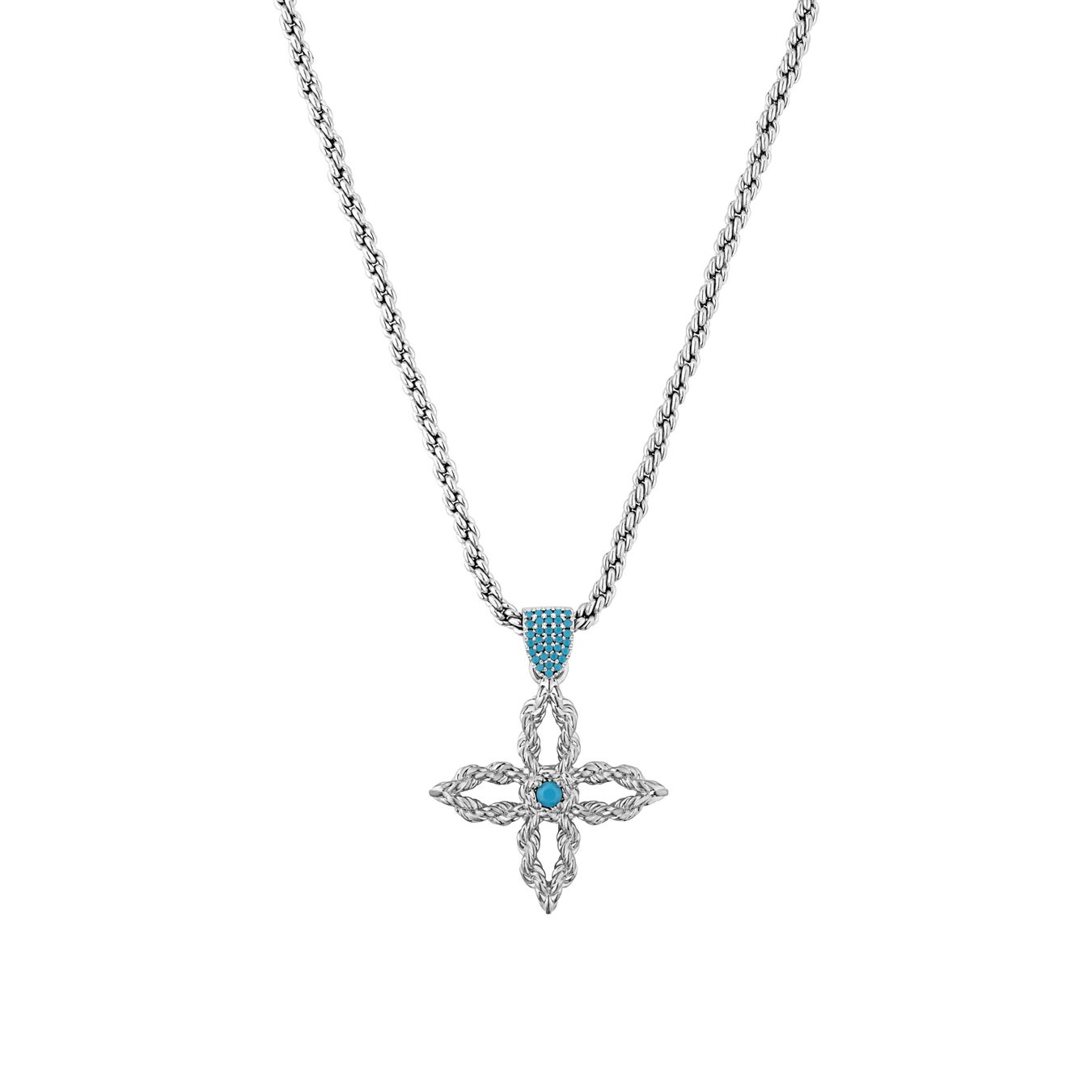 モノグラム·フラワーとチェーンの両方に施したロープのようなメタルワークが特徴の「ペンダント·LV フラワーロープ」。ターコイズカラーのディテールとジルコンのストラスがフラワーとチェーンの先端を彩り、LV チャームが調節可能な留め具を飾ります。エイジング加工のパティーナでヴィンテージ風に仕上げたシルバーカラーのメタルが、ファッショナブルなデザインを完成させます。今シーズンのダンディなウエスタンルックを美しく引き立てるアイテムです。